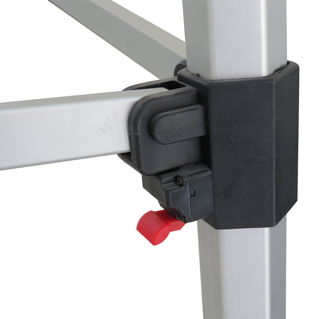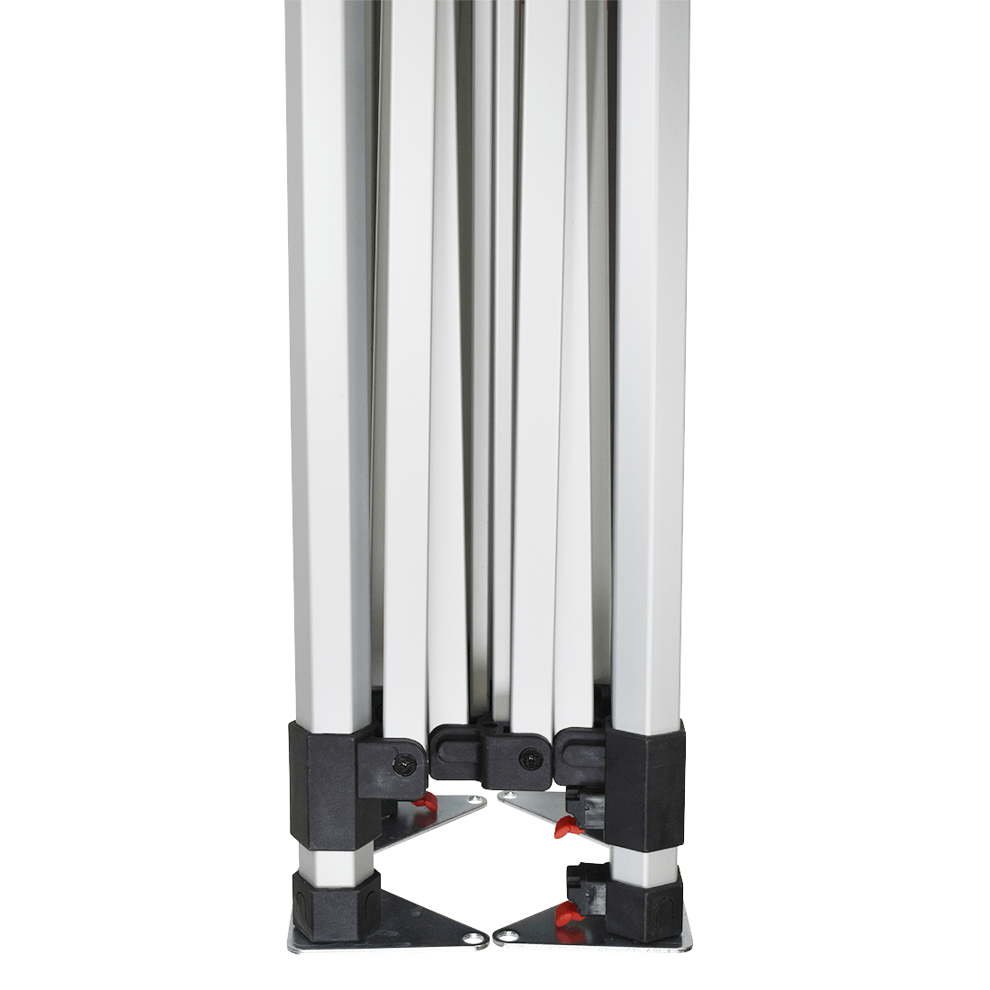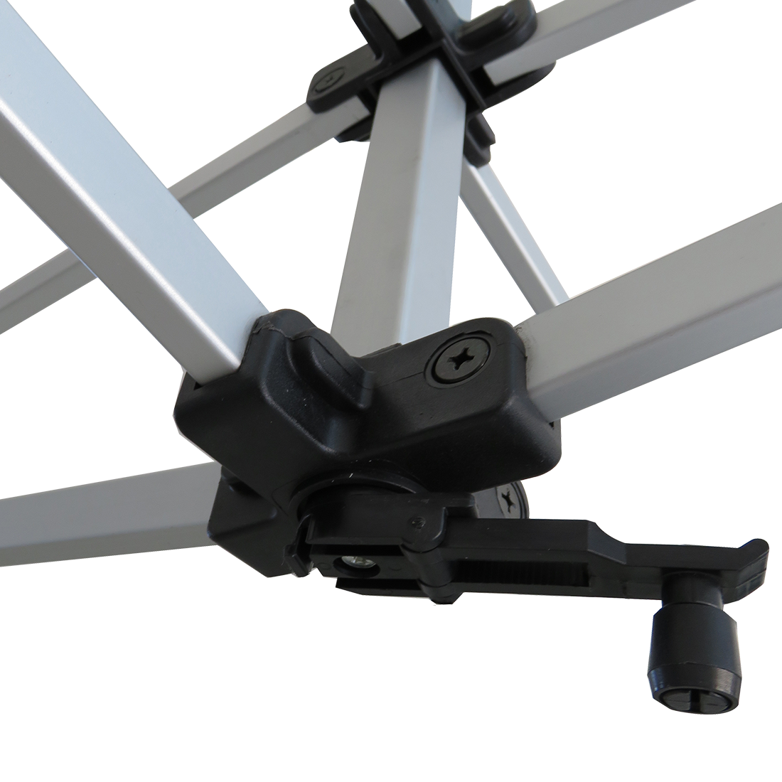 Legs feature plastic levers for pinch-free height adjustment.